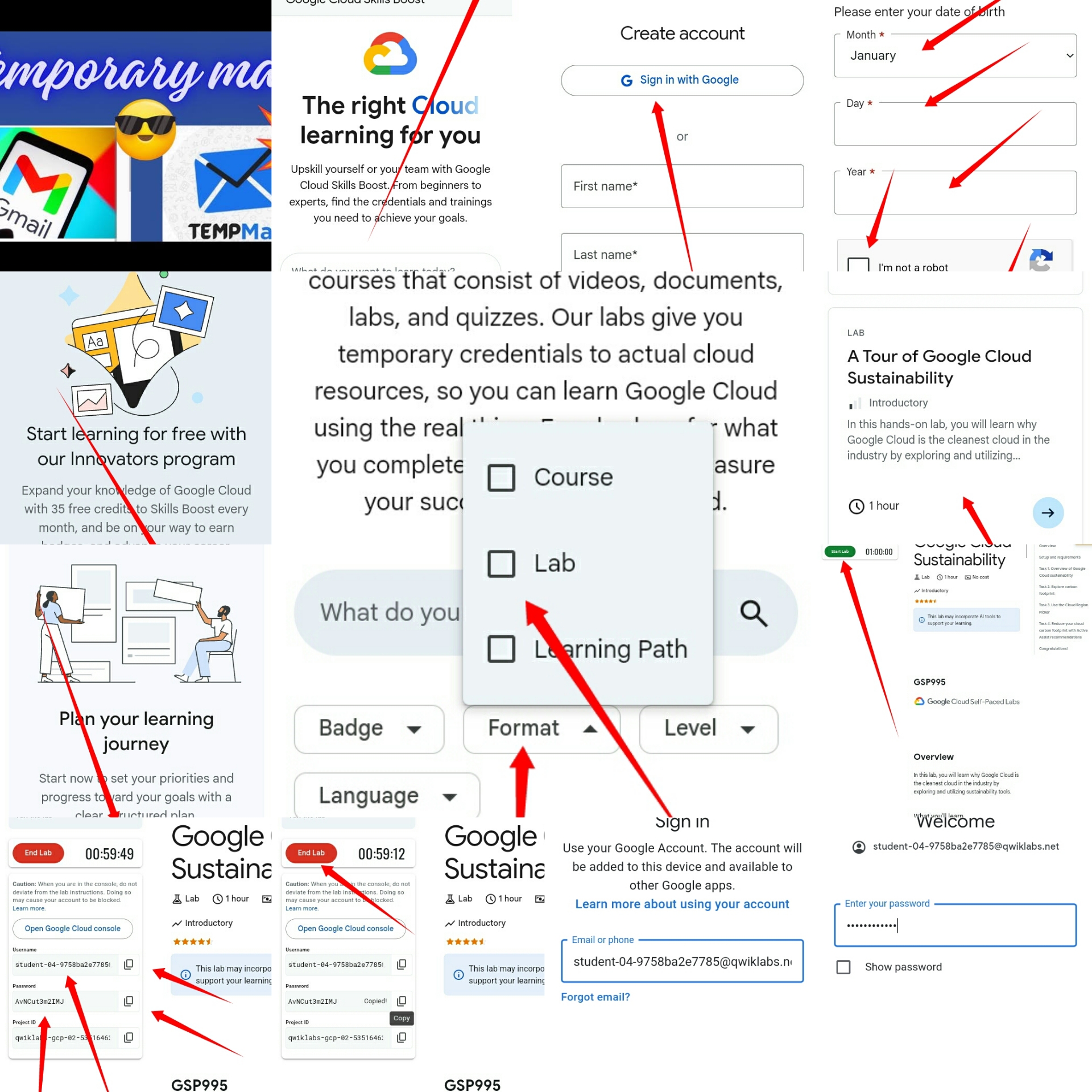 Idan ka latsa End Lab, imel din zai gushe. Amma za ka iya latsa Start Lab don samun sabuwa.